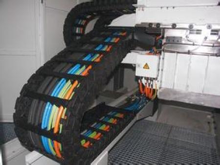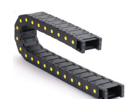 中等尺寸,稳固的拖链系统,是一款横杆可从一侧快速打开的拖链,坚固耐用且强度高,拖链可选择沿内半径或外半径方向打开,平滑的横杆有效降低电缆磨损,大尺寸轴有力提升承载和推拉力。